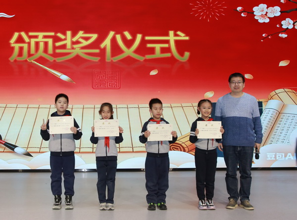 表演結(jié)束后,主管領(lǐng)導(dǎo)孟強進行了精彩的點評,稱贊此次新年誦詩會具有“主題鮮明、全員參與、跨界融合、精彩紛呈”等特點。隨后,孟強主任和侯海濤主任為獲獎班級頒發(fā)“卓越獎”和“創(chuàng)新獎”,為小主持人頒發(fā)獲獎證書。
